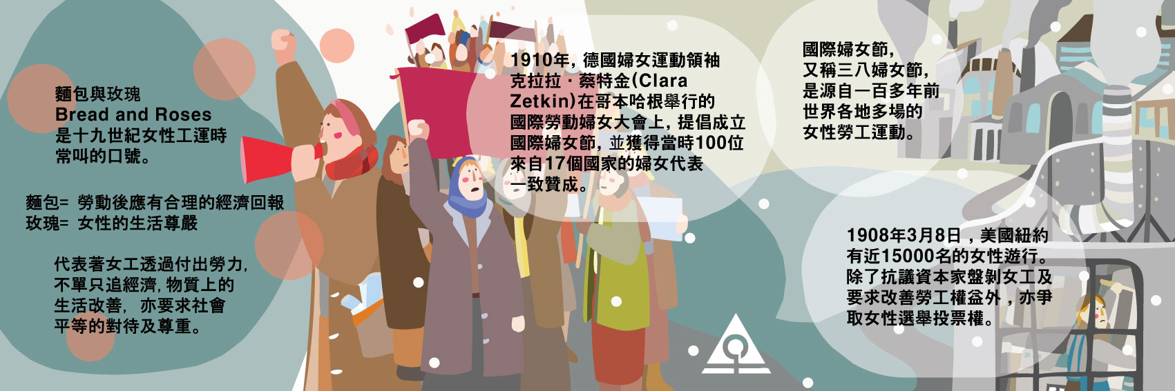 國際婦女節, 又名三八婦女節, 是源自一百多年前世界各地多場的女性勞工運動.