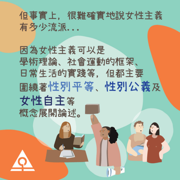 有些書籍會簡單將女性主義分成二至三個流派,而有些則分成九大流派。但事實上,很難確實地說女性主義有多少流派,因為女性主義可以是學術理論、社會運動的框架、日常生活的實踐等,按當時的歷史、社會背景等因素而有所不同,但都主要圍繞著性別平等、性別公義及女性自主等概念展開論述。