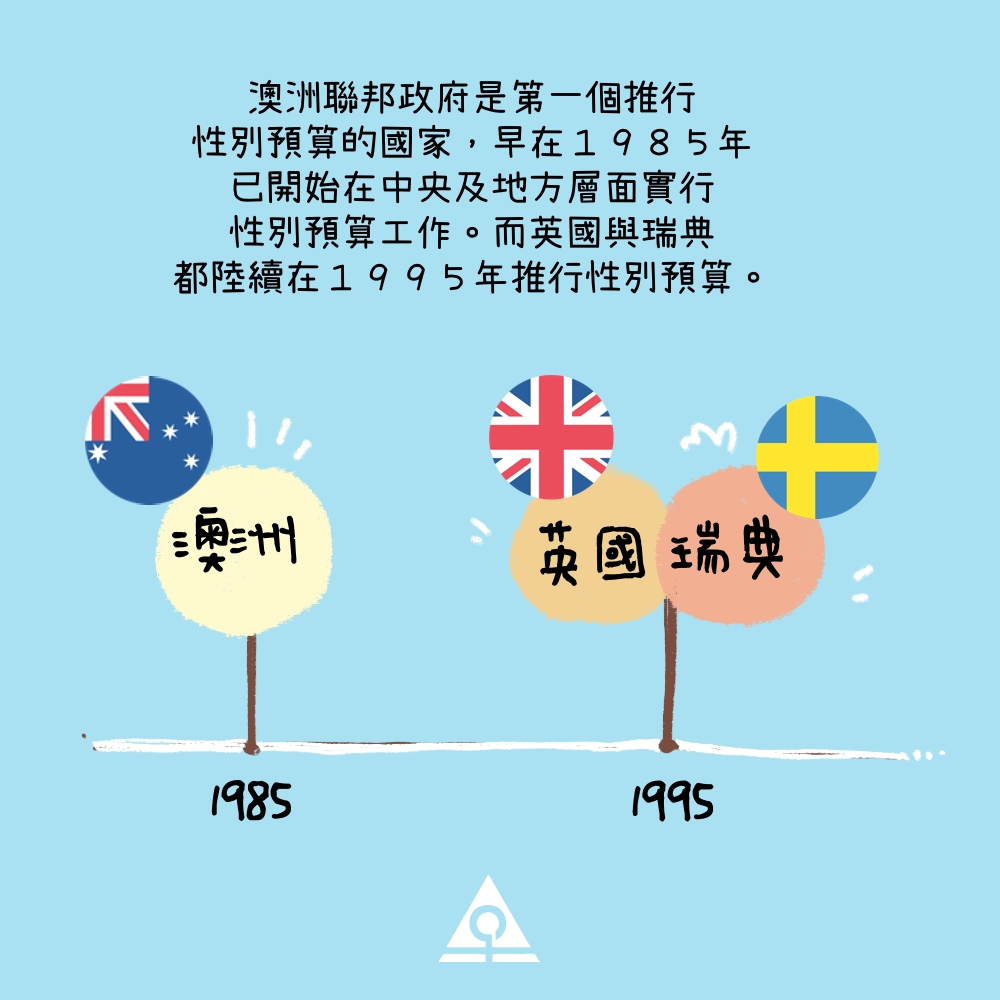 澳洲聯邦政府是第一個推行性別預算的國家,早在1985年已開始在中央及地方層面實行性別預算工作。而英國與瑞典都陸續在1995年推行性別預算。