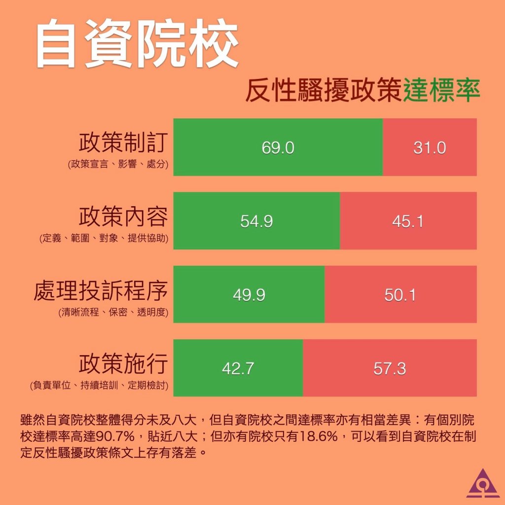 「大專院校反性騷擾政策檢視清單(2020/21)研究報告」自資院校回應率大增 反映院校普遍重視防治性騷擾政策制訂