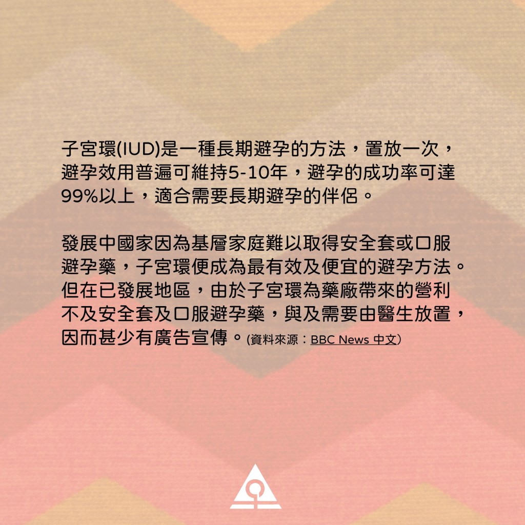子宮環(IUD)是一種長期避孕的方法,置放一次,避孕效用普遍可維持5-10年,避孕的成功率可達99%以上,適合需要長期避孕的伴侶。