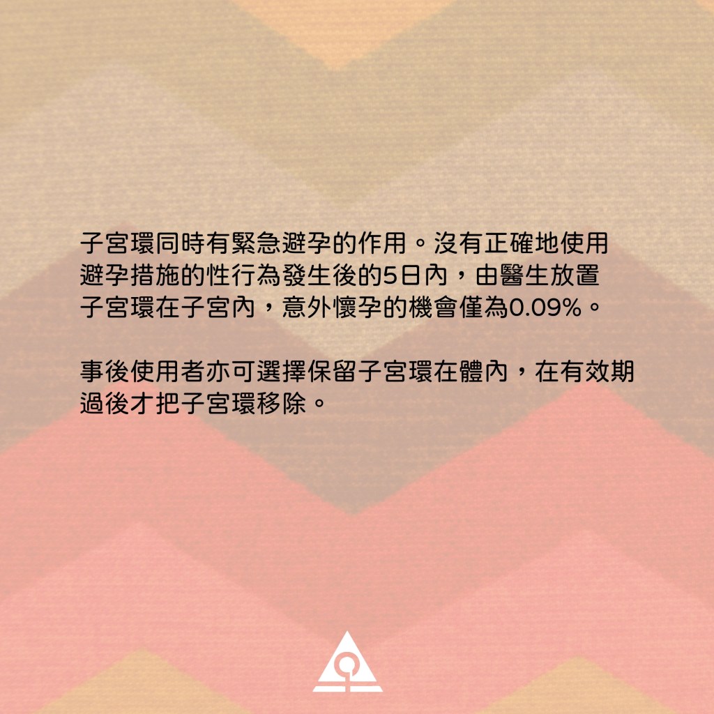 子宮環同時有緊急避孕的作用。沒有正確地使用避孕措施的性行為發生後的5日內,由醫生放置子宮環在子宮內,意外受孕的機會僅為0.09%。事後使用者亦可選擇保留子宮環在體內,在有效期過後才把子宮環移除。
