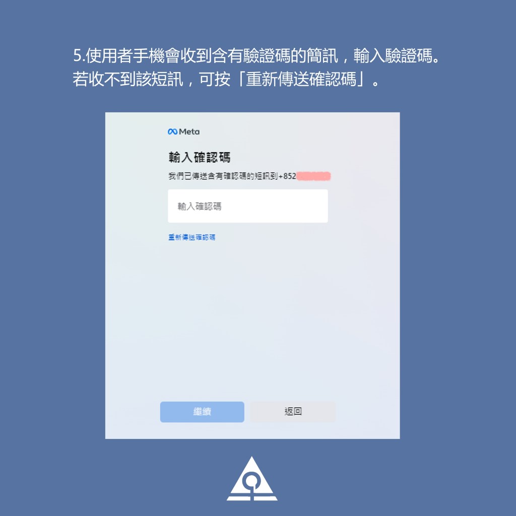 5.使用者手機會收到含有驗證碼的簡訊,輸入驗證碼。若收不到該短訊,可按「重新傳送確認碼」。