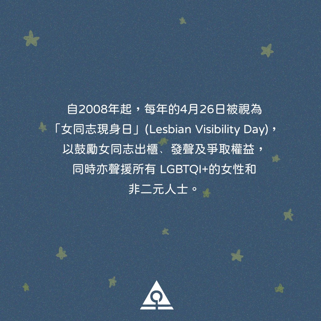 自2008年起,每年的4月26日被視為「女同志現身日」(Lesbian Visibility Day),以鼓勵女同志出櫃﹑發聲及爭取權益,同時亦聲援所有 LGBTQI+的女性和非二元人士。