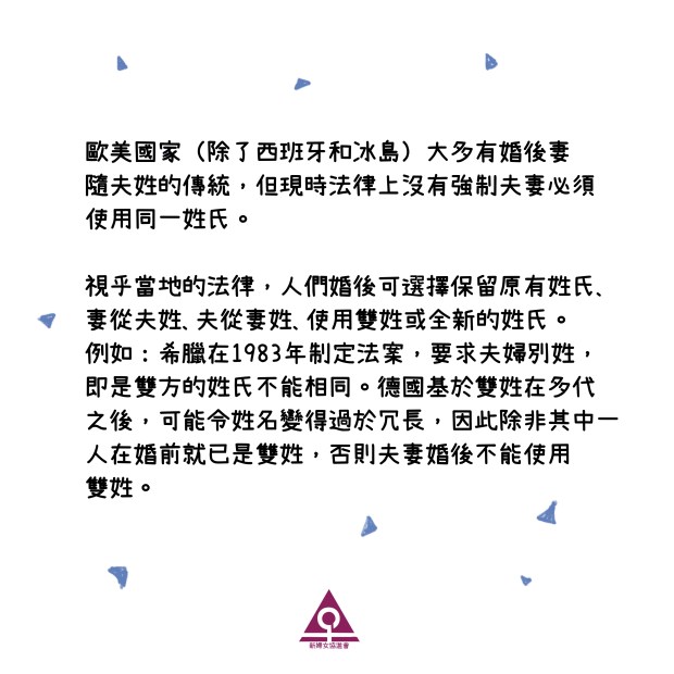 性別觀察- 妻從夫姓:歐美國家