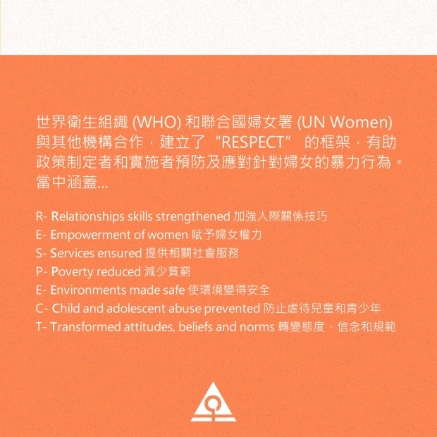 世界衛生組織 (WHO) 和聯合國婦女署 (UN Women) 與其他機構合作,建立了“RESPECT” 的框架,有助政策制定者和實施者預防及應對針對婦女的暴力行為。當中涵蓋…