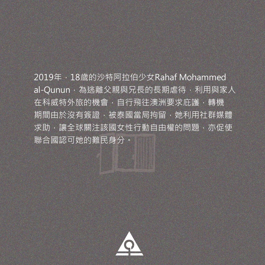 2019年,18歲的沙特阿拉伯少女Rahaf Mohammed al-Qunun,為逃離父親與兄長的長期虐待,利用與家人在科威特外旅的機會,自行飛往澳洲要求庇護,轉機期間由於沒有簽證,被泰國當局拘留,她利用社群媒體求助,讓全球關注該國女性行動自由權的問題,亦促使聯合國認可她的難民身分。