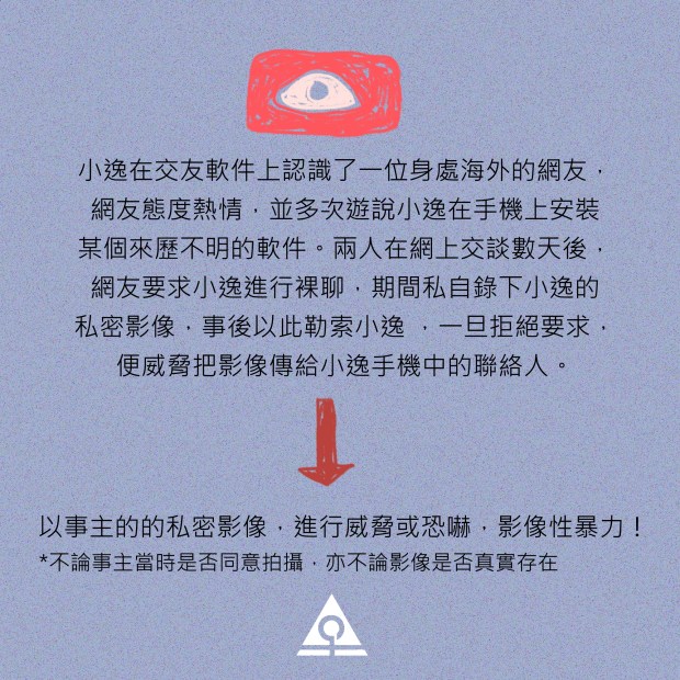 → 以事主的的私密影像,進行威脅或恐嚇,影像性暴力!