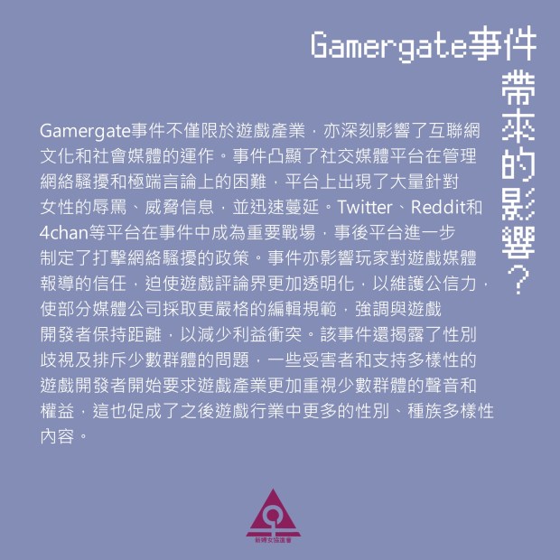 Gamergate事件不僅限於遊戲產業,亦深刻影響了互聯網文化和社會媒體的運作。事件凸顯了社交媒體平台在管理網絡騷擾和極端言論上的困難,平台上出現了大量針對女性的辱罵、威脅信息,並迅速蔓延。