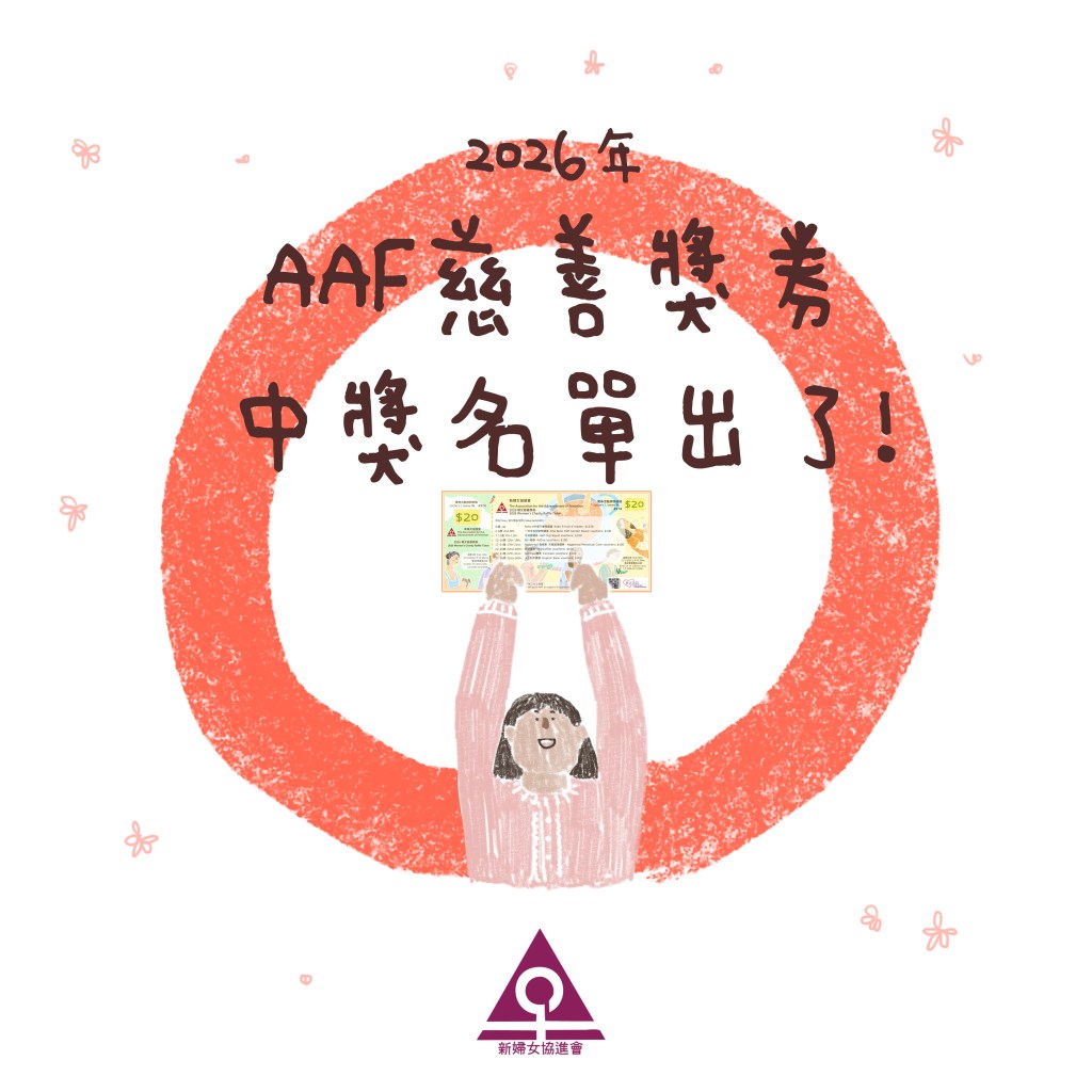 各位得獎者須要在2026年5月31日或之前,於婦進的辦公時間內致電2720 0891,或電郵aaf@aaf.org.hk,並安排到本會領獎,所有獎品不得兌換現金。